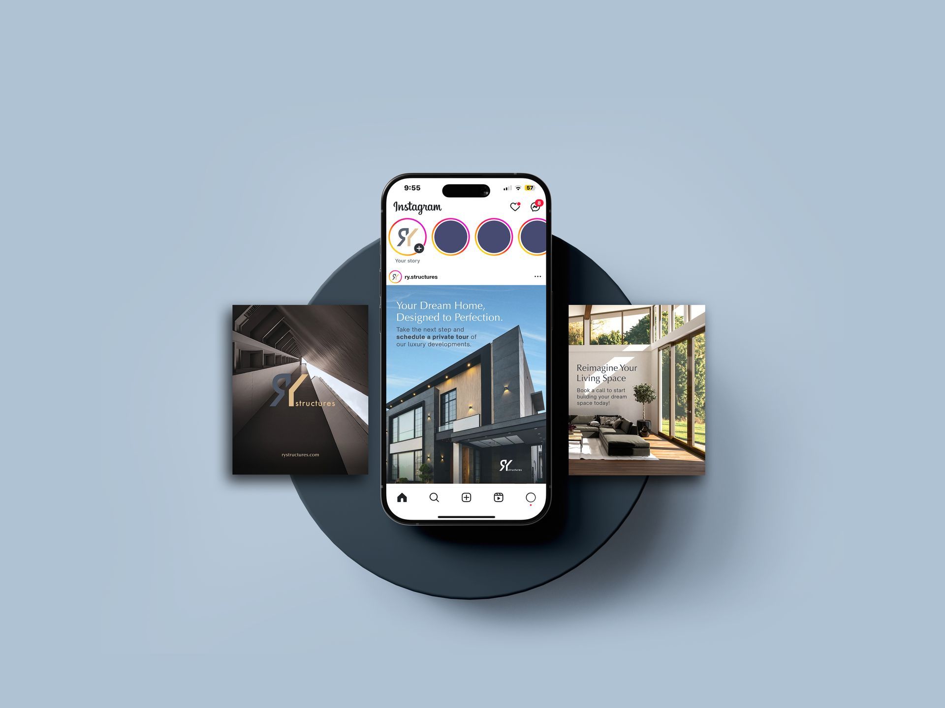 We designed a brand identity system that is clean, confident, and premium — giving RY Structures an instant sense of authority in the construction/development world. To support their launch, we extended the brand across marketing collateral, social media, and physical touchpoints, ensuring every interaction feels consistent and elevated. The result is a brand that doesn’t just announce their arrival — it establishes them as a credible, premium choice in a competitive market.