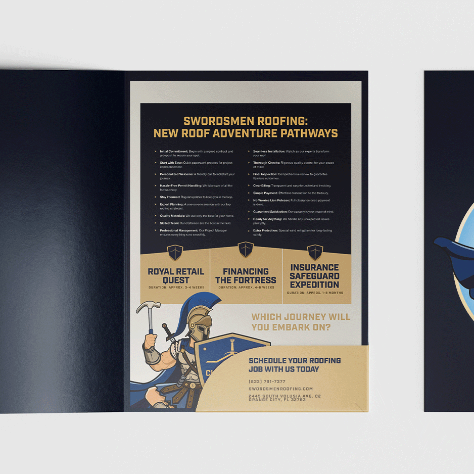 We rebranded Swordsmen Roofing & Construction with a bold, professional identity system and a comprehensive brand guideline. This new foundation ensures consistency across every touchpoint — from marketing collateral to internal documents. Beyond the visuals, we designed proposal and estimate templates that make a strong impression in competitive bidding scenarios, positioning the company as polished, trustworthy, and ready to win. The result is a brand that not only markets better but also operates with greater credibility and confidence.